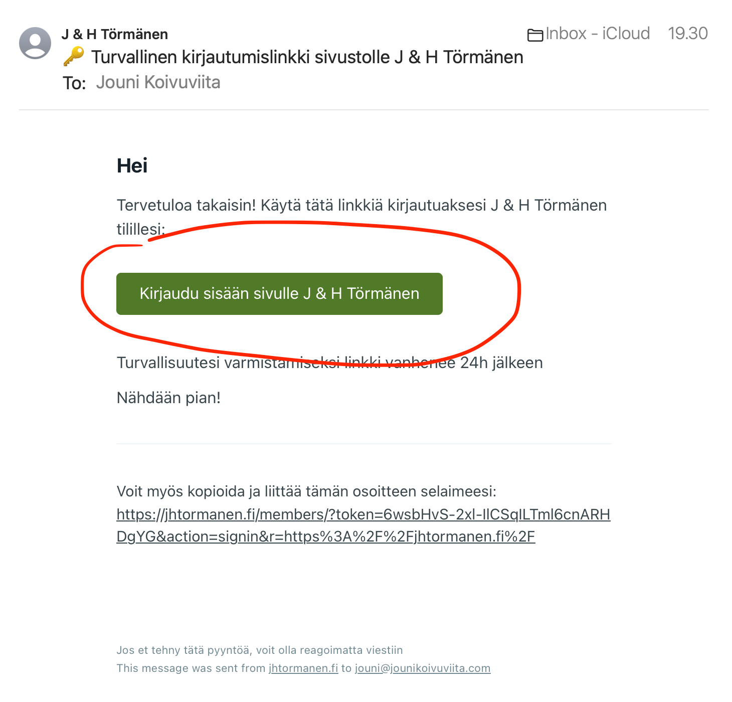 - Saat sähköpostin antamaasi osoitteeseen, jossa on linkki, mitä klikkaamalla kirjaudut sisään sukusivustoon. / Du kommer att få ett e-postmeddelande till den adress du angett med en länk som du kan klicka på för att logga in på familjens webbplats.