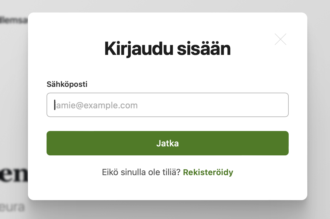 - Syötä sähköpostiosoite ja klikkaa Jatka-painiketta. / Skriv in din mailadress och klicka på Jatka-knappen.